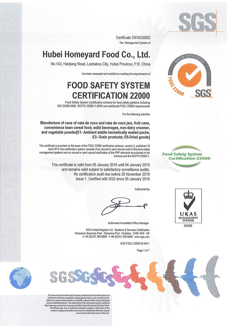 Hubei Homeyard Food Co.,Ltd is a high and new technology company specially engaged in technologic development ,production and sales of Food Ingredients.Established in 2009, we have possessed of the production scale of 60 thousand tons of non dairy creamer , 100 thousand tons of nata de coco and popping boba, 40 thousand tons of canned foods, 30 thousand tons of grain and fruit powder. Our products are sold well in 26 province of China and also have been exported to foreign country such as Korea, Vietnam, Thailand, Japen, Russia, Myanmar ,ect.